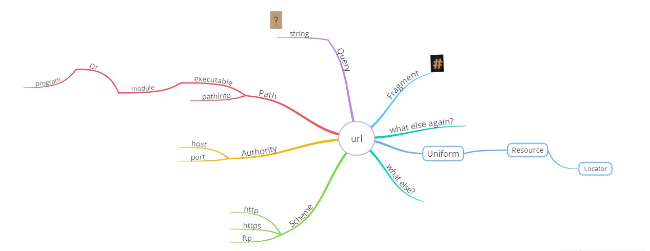 le protocole,le domaine, le sous-domaine,le top-level-domaine, le port, le path,le query string et le fragment